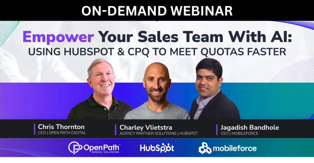 AI is significantly speeding up quoting and sales processes. On Sept. 28th, HubSpot, Mobileforce and Open Path walked through use-cases and demos on how revenue teams are leveraging HubSpot, AI and CPQ solutions