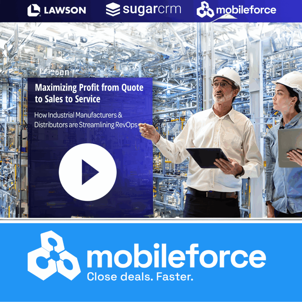 On-Demand Webinar Join Lawson Products, SugarCRM and Mobileforce as industry experts from these organizations discussed RevOps best practices in the industrial, manufacturing, and distribution sectors. Hear insights from Lawson Products, one of Industrial Distribution’s Big 50 distributors, along