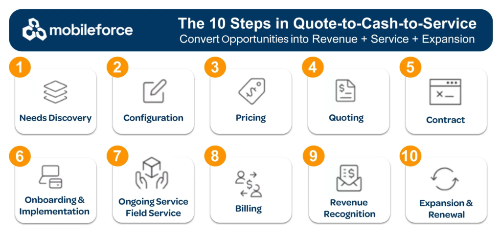What Exactly is Quote-to-Cash-to-Service? While Quote-to-Cash (QTC) is commonly known within all sales and RevOps circles, Mobileforce is proud of coining the phrase “Quote-to-Cash-to-Service” to describe our platform. But what exactly does it mean