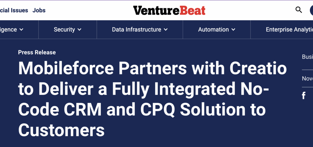 Mobileforce Partners with Creatio to Deliver a Fully Integrated No-Code CRM and CPQ Solution to Customers
