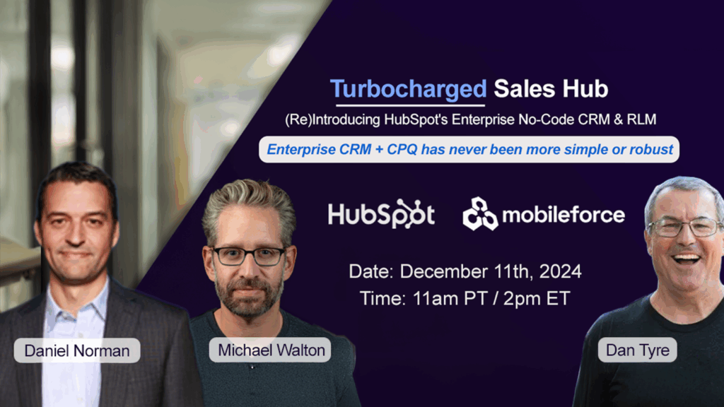 ON-DEMAND WEBINAR: “HubSpot and Mobileforce: Turbocharged Sales Hub: Re-Introducing The Enterprise No-Code CRM + CPQ”