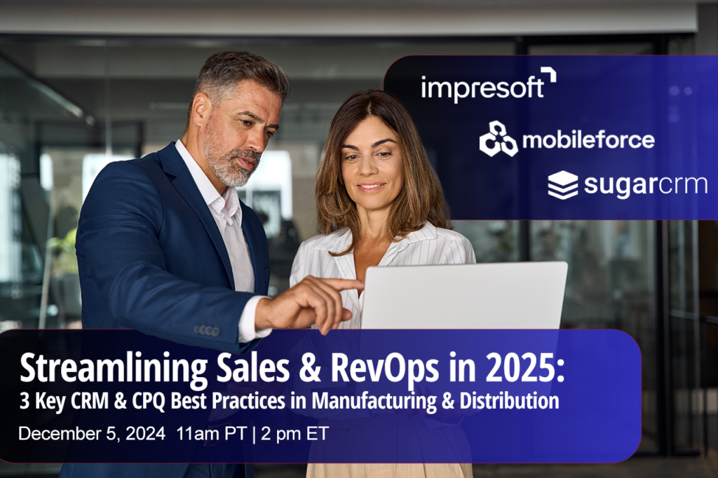 Webinar participants joined Mobileforce, Impresoft Engage and SugarCRM for our informative discussion about Sales & RevOps in 2025, including the 3 key CRM & CPQ best practices that all sales leaders should consider –
