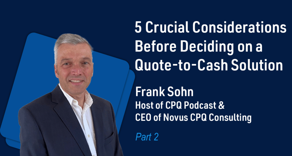 5 Crucial Considerations Before Deciding on a Quote-to-Cash Solution, Pt. 2 — By Frank Sohn, Host of The CPQ Podcast