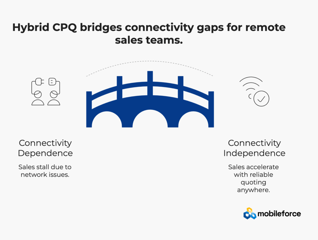 Remote sales teams face a harsh reality: connectivity fails at the worst possible moments. When a $500K manufacturing deal hinges on an instant quote in a facility with spotty Wi-Fi, or a field service technician needs to price complex equipment configurations while standing in a rural wind farm, traditional cloud-only CPQ systems fall short. Hybrid online-offline quoting bridges this gap by enabling full quote creation, pricing rule enforcement, and customer interactions regardless of network status. Modern configure price quote platforms like Mobileforce’s offline-first CPQ solution ensure sales velocity never depends on signal strength, delivering enterprise-grade quoting capabilities that work anywhere business happens.