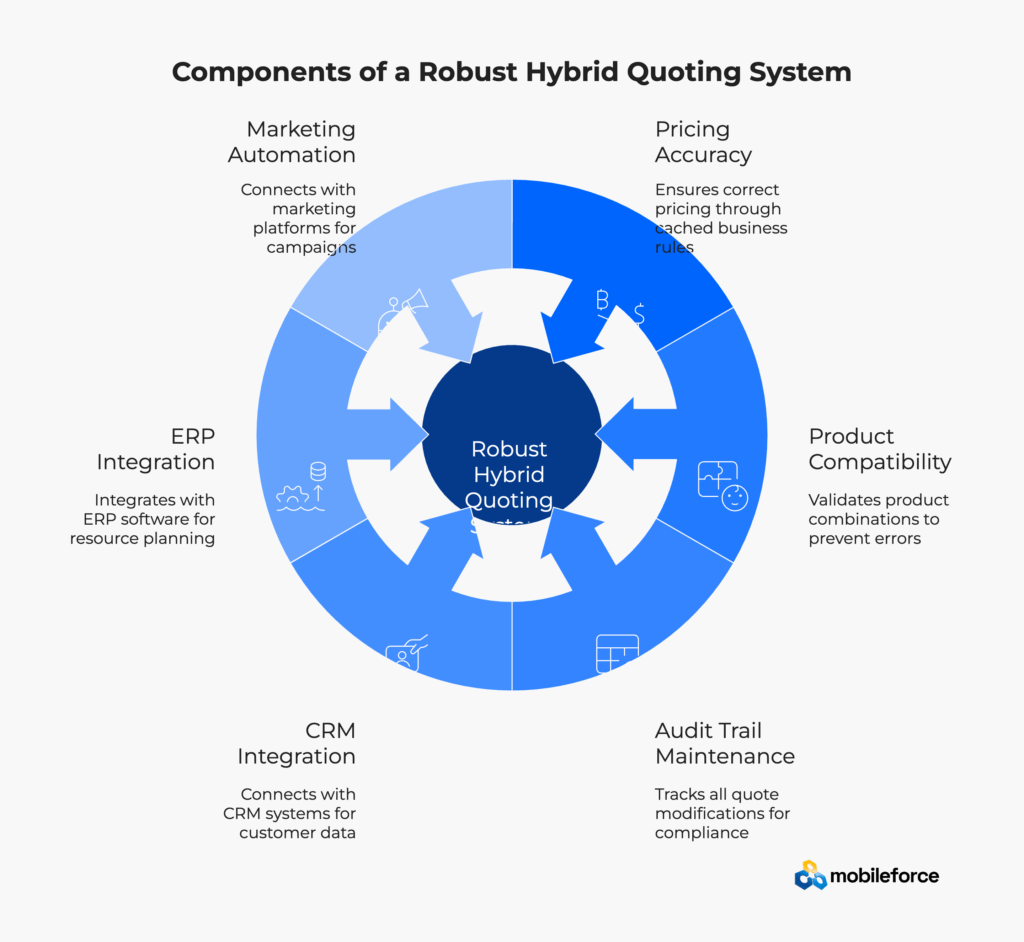How does hybrid quoting integrate with existing CRM and ERP systems?