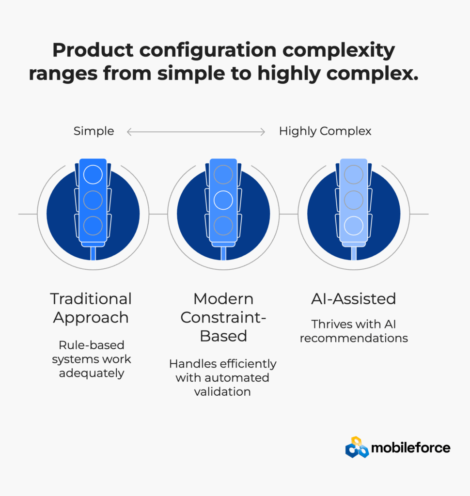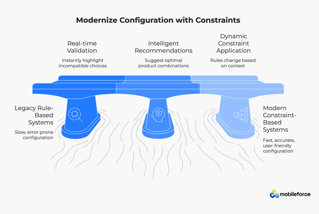 The evolution from rule-based to constraint-based configuration represents more than technological advancement—it’s a fundamental shift in how businesses think about product complexity.