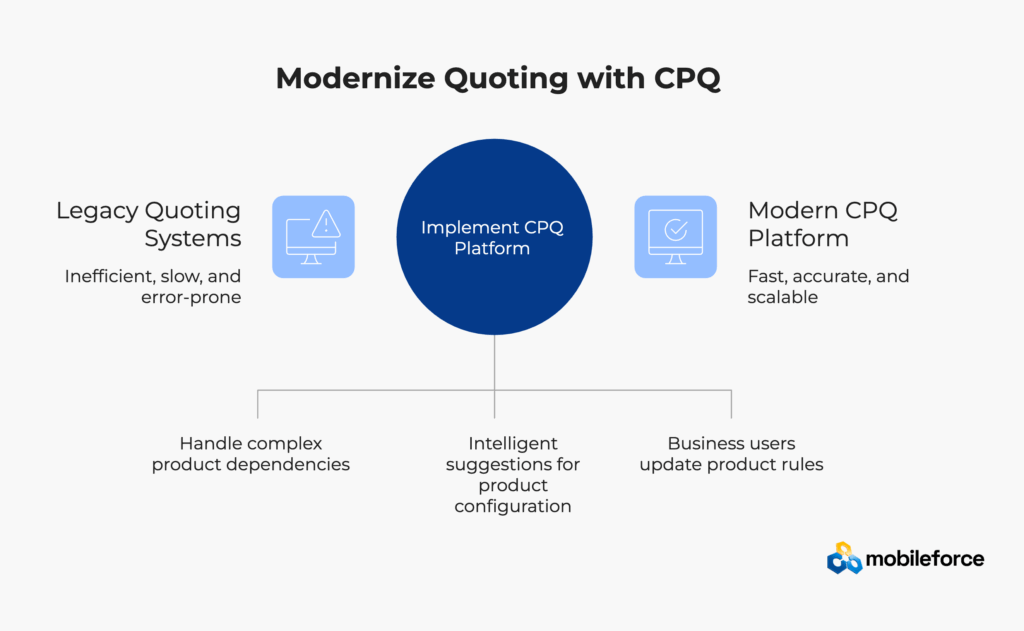 Ready to see how modern CPQ can transform your quoting process? Schedule a personalized demo to discover how companies achieve 3x faster quote generation with Mobileforce’s intelligent platform.
