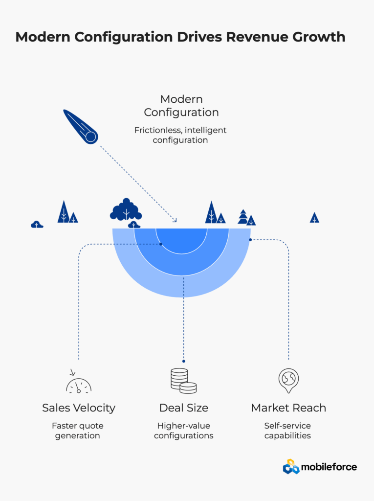 But modernization isn’t just about avoiding competitive disadvantage. It’s about unlocking revenue opportunities that don’t exist with legacy systems. When configuration becomes intelligent, responsive, and user-friendly, it transforms from a cost center into a growth engine.