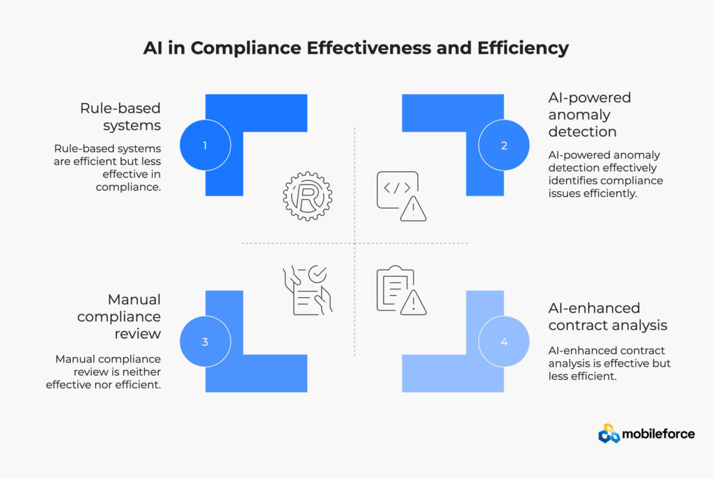 Natural language processing enhances contract compliance by analyzing terms and conditions for regulatory adherence. Recent advances in NLP accuracy enable AI to identify missing clauses, conflicting terms, and non-standard language that might create compliance exposure. A construction company using AI-powered contract analysis reduced compliance-related change orders by 64%.