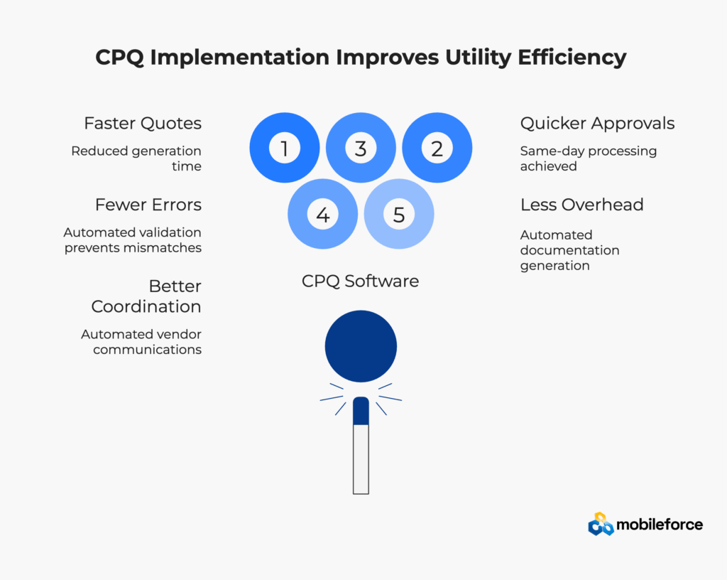 Unified electric utility CPQ represents a fundamental shift from fragmented utility workforce management to integrated power infrastructure operations. Instead of maintaining separate systems for quoting, work orders, and approvals, power companies gain a single source of truth that spans the entire electrical system service lifecycle through comprehensive revenue operations management.
