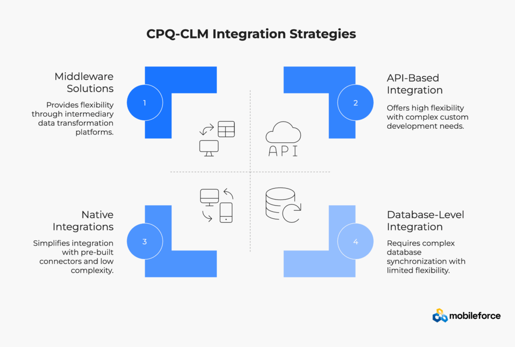 Middleware Solutions: Integration platforms like MuleSoft, Boomi, or Workato can serve as intermediaries between CPQ and CLM systems, handling data transformation and workflow orchestration.