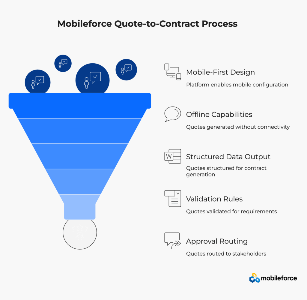 As Mobileforce’s customer experience platform overview explains, “The quote-to-contract process is a critical touchpoint in the customer journey—one that shapes perceptions about how easy it will be to do business with your organization.”