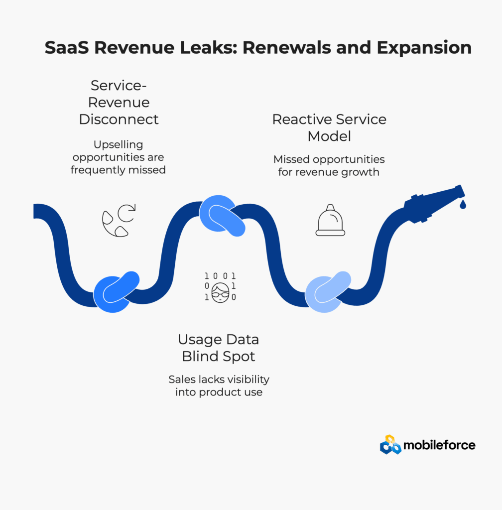 The problem intensifies when considering that new customers tend to expand the most during year one of their tenure, as they ramp up their usage and get fully onboarded. Service teams are uniquely positioned to identify these expansion opportunities, yet without proper systems integration and communication protocols, this valuable intelligence remains trapped within service silos.