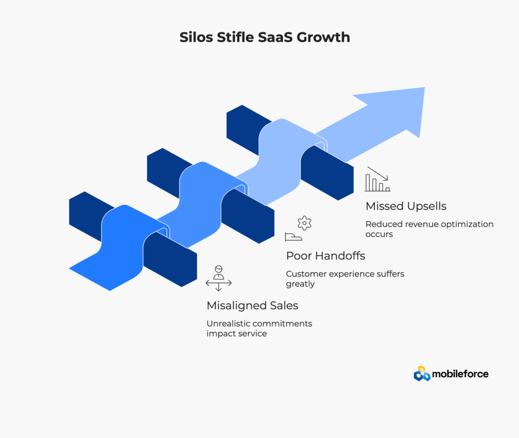 The consequences of this misalignment extend far beyond internal inefficiencies. When sales and service teams operate in isolation, companies experience onboarding delays that frustrate new customers, miss critical upselling opportunities during service interactions, and face higher churn rates due to unmet expectations and poor customer experiences.