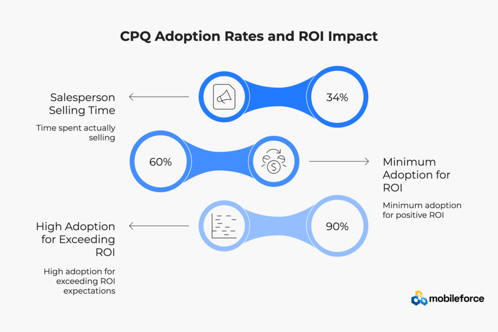 Poor CPQ adoption destroys ROI faster than any technical issue. Research shows that only 34% of a salesperson’s time is actually spent selling, with administrative tasks consuming the remainder. Effective CPQ software can eliminate much of this administrative burden – but only if users actually adopt the system.