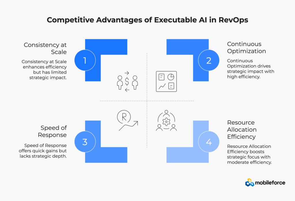 Revenue execution speed directly correlates with deal conversion rates and customer satisfaction scores. Organizations with insight-only AI face significant timing disadvantages compared to competitors with automated revenue workflow capabilities.