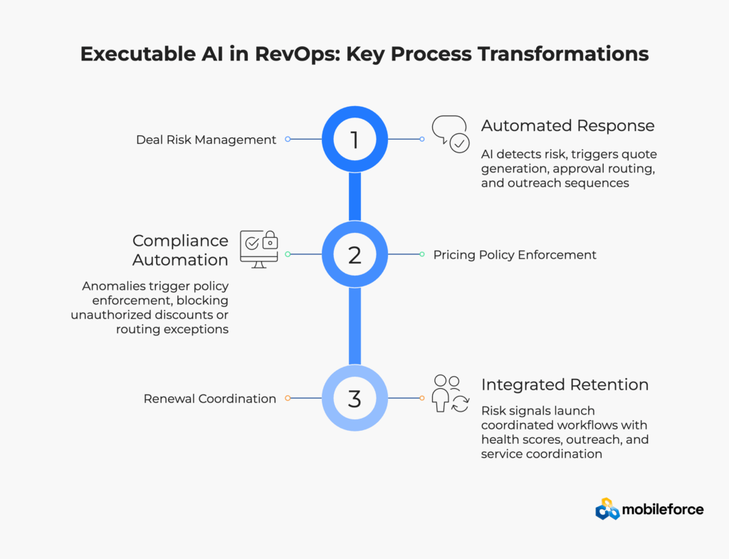 Executable AI transcends predictive insights to enable systematic revenue actions. Here’s how this transformation appears across key revenue processes: