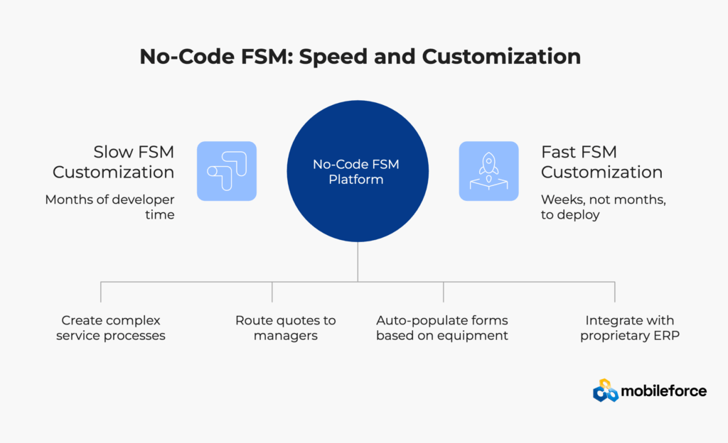 Want to see how no-code configuration accelerates FSM implementations? Schedule a field service management consultation to explore customization options.