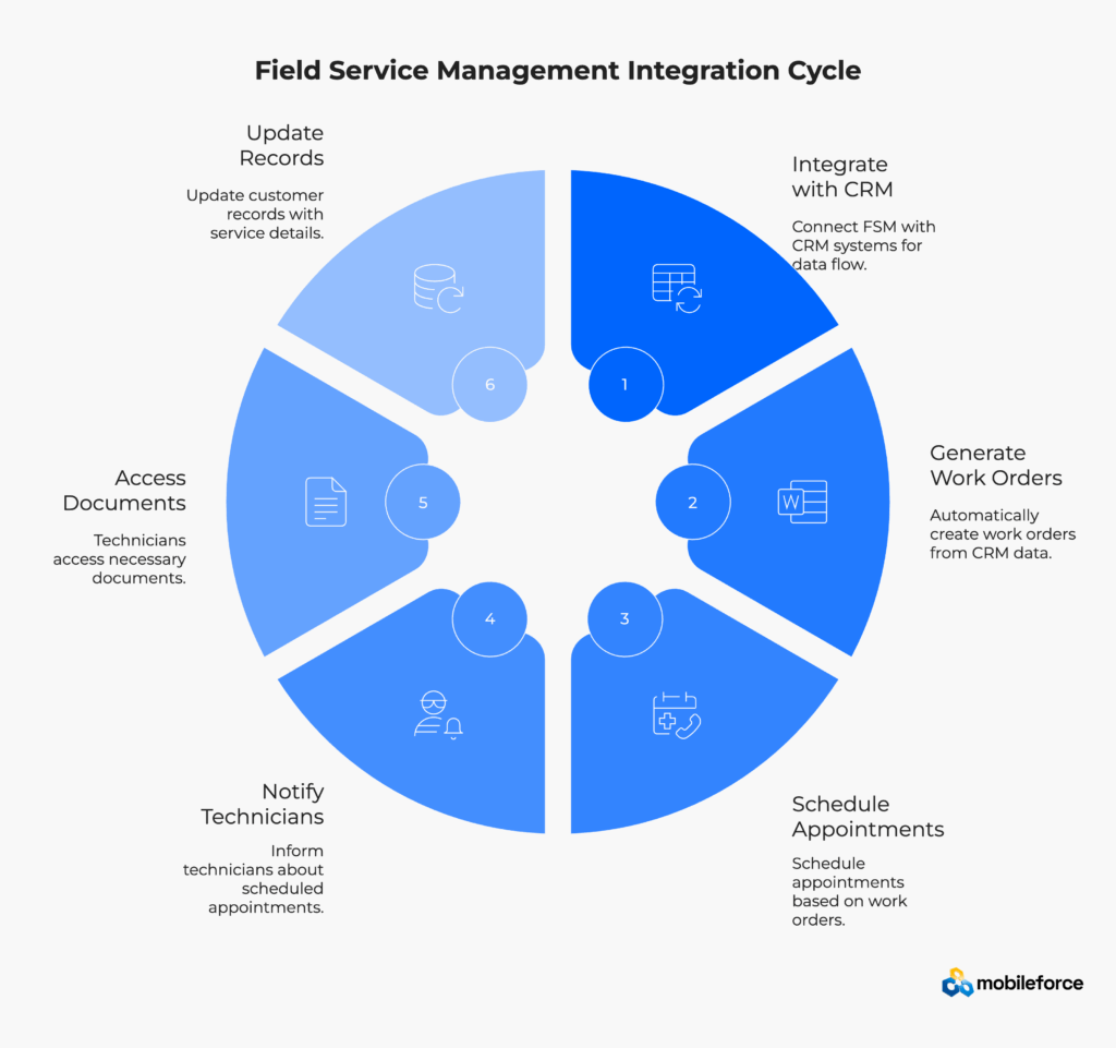 But field service integration isn’t just about data sharing – it’s about workflow continuity. When a CRM opportunity moves to “Closed-Won,” the FSM platform can automatically generate work orders, schedule installation appointments, and notify the appropriate technicians. When field work is completed, customer records update automatically with service history, parts consumed, and follow-up requirements.
