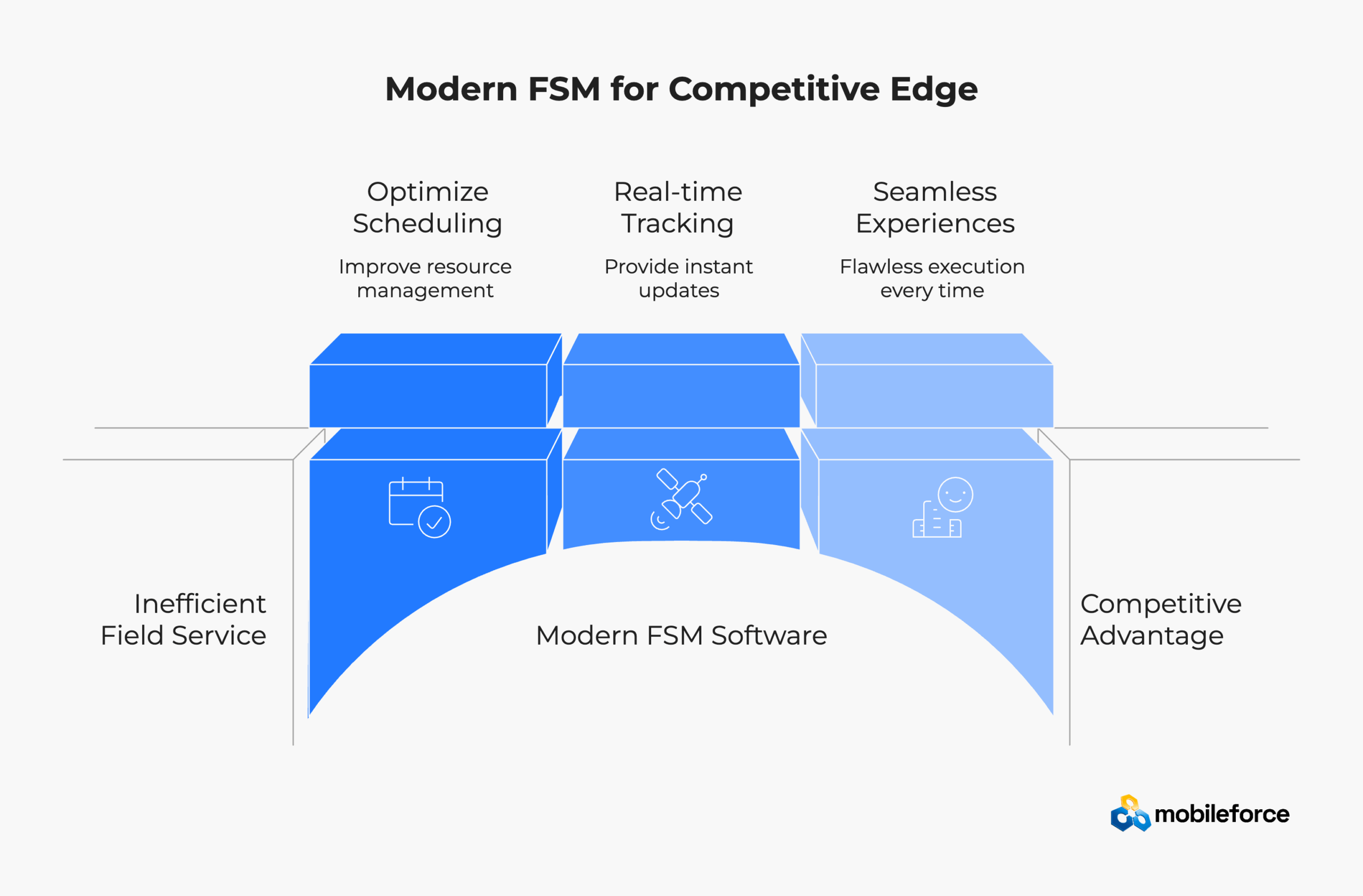 Individual FSM features matter, but the real competitive advantage comes from how well everything works together in your field service management system. Mobileforce doesn’t just provide a collection of field service tools – it creates a unified FSM platform where intelligent scheduling informs inventory management, where AI-powered quoting connects to real-time service delivery, and where mobile workforce capabilities seamlessly integrate with back-office operations.