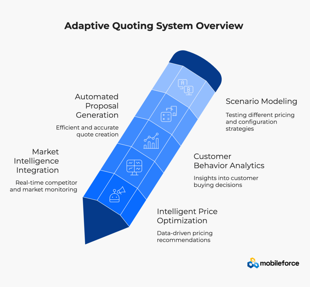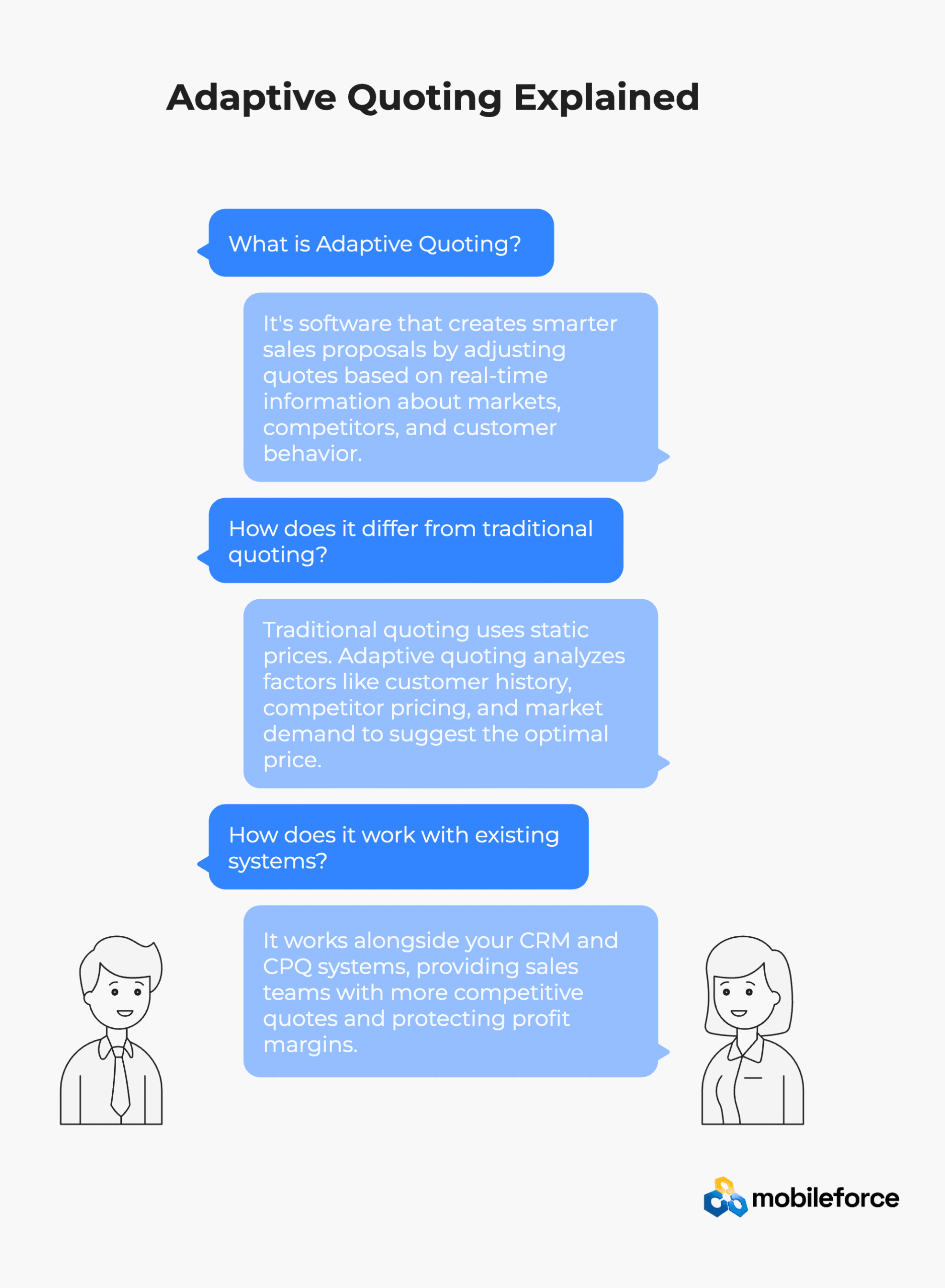Adaptive quoting is software that creates smarter sales proposals. Instead of using the same pricing for every customer, it adjusts quotes based on real-time information about markets, competitors, and individual customer behavior.