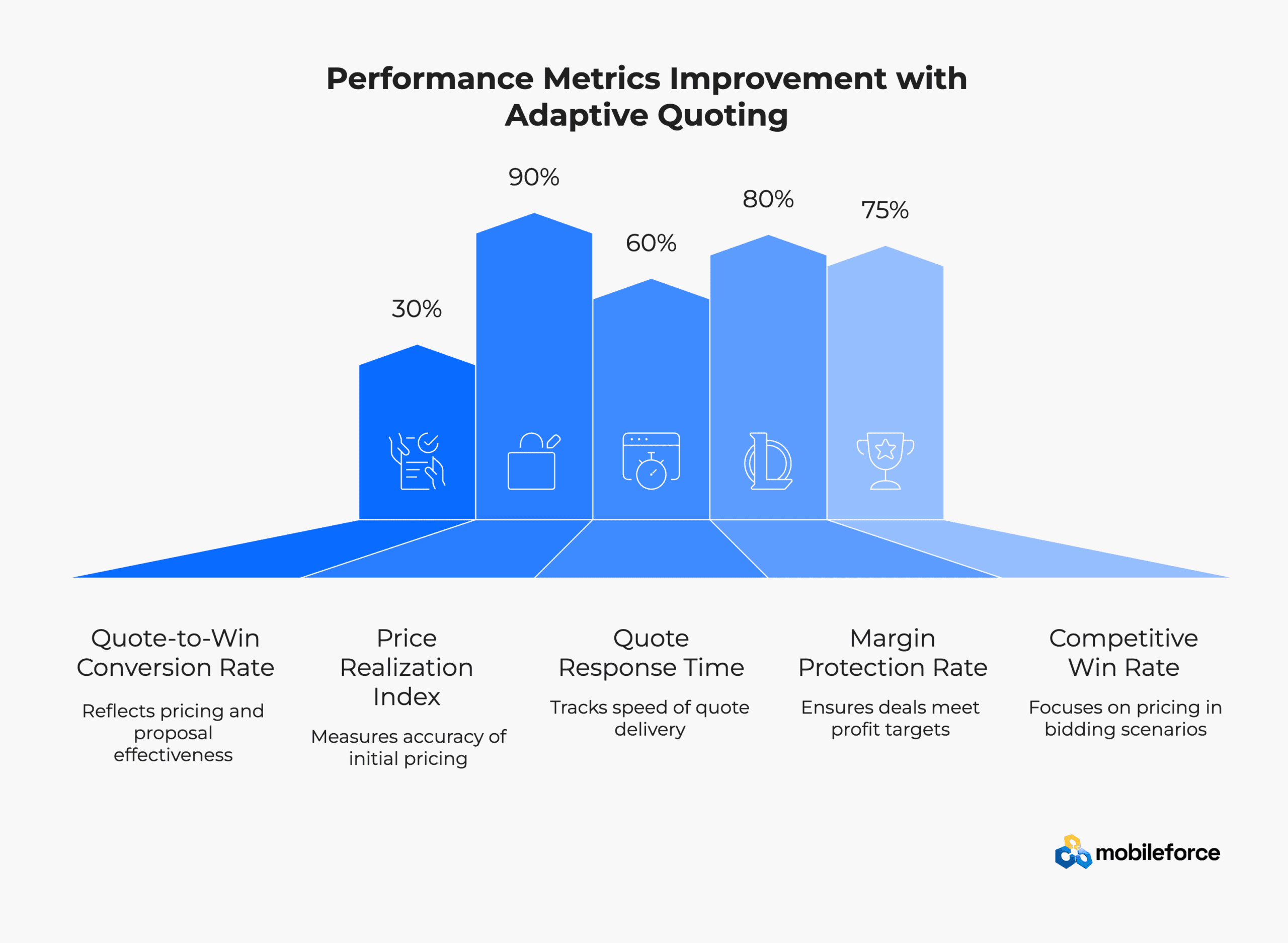 Measuring success requires tracking the right indicators. These key metrics show whether adaptive quoting delivers promised improvements and where additional optimization might be needed.