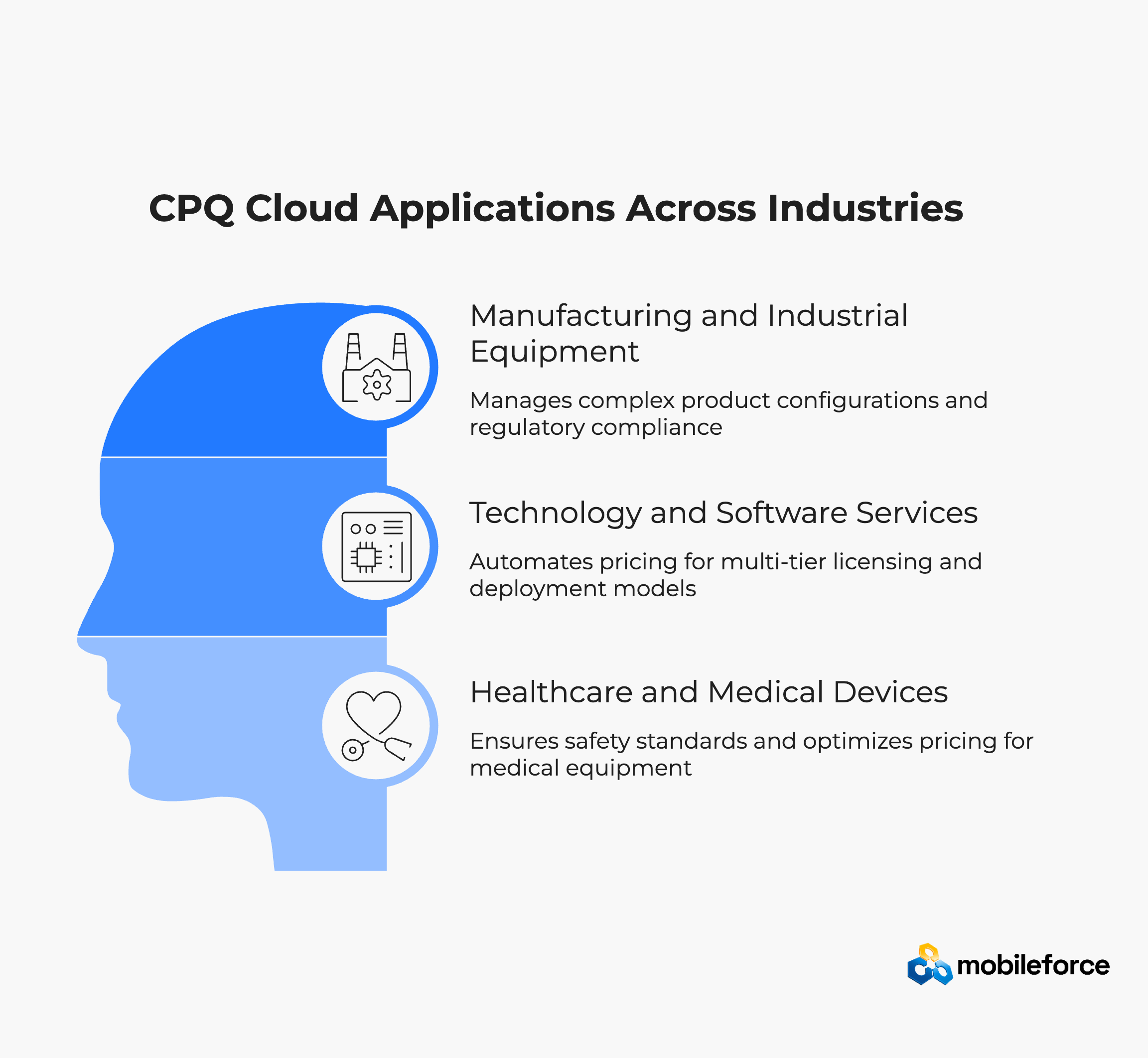Manufacturing organizations benefit significantly from CPQ Cloud solutions due to complex product configurations, variable pricing structures, and extensive customization requirements. Industrial equipment manufacturers use CPQ to manage thousands of product options while ensuring technical compatibility and regulatory compliance.