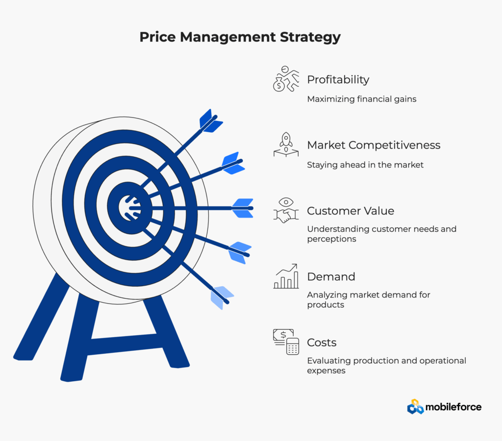 Strategic Pricing: Price management aligns pricing strategies with broader business goals, such as revenue growth, market share expansion, or profit maximization. This involves balancing financial objectives like gross margin and EBITDA with market dynamics.